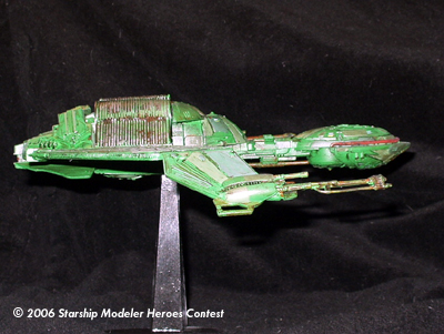 The kit (purchased from the SSM store, of course) is from AMT/ERTL. The only modification to the kit itself is the addition of some styrene pieces to fill in the gap between the wings and the bottom of the ship body.