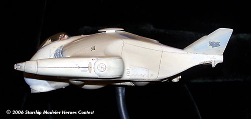 This model of the F/A-40 Intruder II is based on the movie Independence Day (ID4) or rather the aftermath of the alien attack portrayed in that movie. In my estimation, the aliens in the movie were just the first wave. Another alien “mother” ship arrived almost five years to the day. This time we were ready for them, but the “virus” didn't work, as they were by this time aware of this tactic. We had five years to prepare and prepare we did. We learned a lot from the hardware brought down in the first attack and we push new weapons systems into production quickly and efficiently. It was in this hectic period that the F/A-40 Intruder II was developed. This craft allowed earth's heroic pilots, like Major Steven Hiller (Cpt. Hiller in the movie), to be able to meet the alien attacker craft head on and to hold their own against the worst the aliens could through at them.