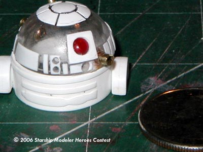 I then created R2 from a plastic dome, styrene tubing, and sheet styrene.