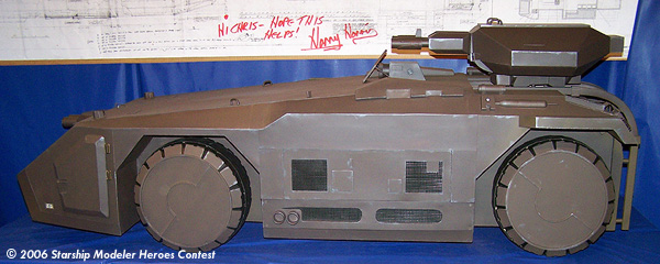 I worked from a very detailed blueprint of the APC that was used by the Aliens props department to build the full-scale version. It came in handy, to say the least. The Halcyon kit was also a great help. I spent many hours taking measurements off the model and scaling them up.