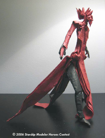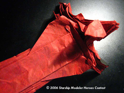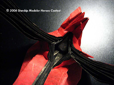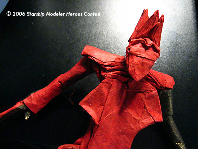 - creating the proper color changes on his legs, hands and dark mechanical arm. To do this, I used the sides of the paper to create these appendages so that I could turn the paper inside out, exposing the black.