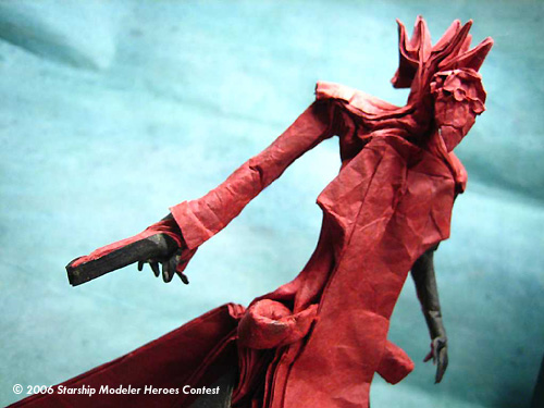 - folding the head. I was able to subdivide the top corner into many points to depict the spiky hairdo that Vash (and many an anime hero) is known for. The round glasses were formed by pulling out some extra paper and pinching the center and edges.