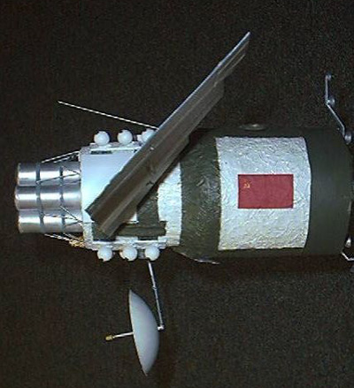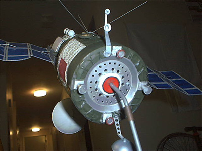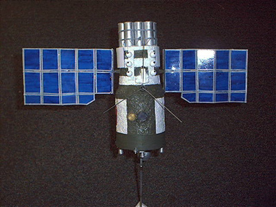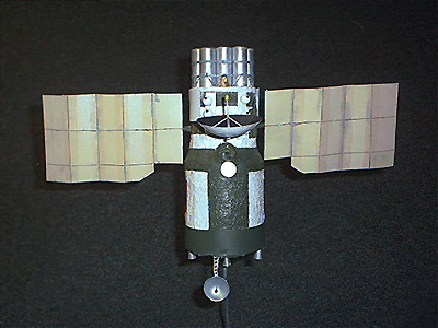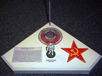 Scale: 1/32 The Universal Service Block (USB) is, in my opinion, the most powerful space "battlewagon" that has ever been designed by aerospace engineers up to this time. The USB is a Salyut design space station that was built to be maneuverable and capable of changing its orbit. There were versions with missiles and lasers. I chose to build the missile version since it was lighter and the most maneuverable, capable of hitting targets as high as geosynchronous orbit. Larger than a Blue Gemini and with probably longer endurance, the USB could have dominated space around Earth, destroying anything from satellites to Shuttle Orbiters or Space Station Freedom. Although the Polyus was bigger it was incapable of changing its orbital inclination and its engines were designed for nothing beyond orbital maintenance. The USB would have been serviced by the Buran Shuttle and supported a crew of two for up to seven days. The Model The model itself is 100% scratch build in 1/32nd scale. The engines at the back are from 1/200 shuttle kits, the body of the ship itself is a section from a nerf ball bat with cardboard carpet roll holder in the inside and layers of cardboard cotton wool and tin foil on the outside. the cotton wool and tin foil was to give it the look of having an extra thick micro-meteoroid shield. The port holes are made of clear plastic inserted in Bahaman Hot sauce bottle tops. The Hammer and Sickle flag is just printed out in color and stuck on with wood glue. The solar panels are made from sheet styrene but had to be strengthened with stem wire, the undersides are covered with strips of masking tape since I didn't have khaki paint at the time. The Antenna is from a box I got a globe of the world in and the mast is a shuttle robotic arm. The missile canisters themselves are regular 1/2" pipe with the caps made from sections of ping pong balls. The model was painted by hand with dark green and white to look like the Alamatz station. The base is from an award trophy I found in a dumpster and has a description of the USB, a star, a patch and a 1/32nd scale Cosmonaut from Fondre Miniatures. Image: Side view Image: Overall Image: Rear view Image: Base |