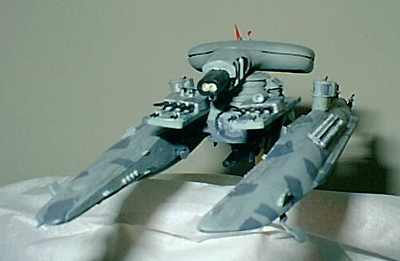 By Chris Condon Scale: 1/2400Concordiat Naval Vessel - Bolo Dreadnought: Ship-of-the-line 51-VGD Vanguard . Vanguard is a Concordiat Dreadnought, based in the same sci-fi universe as the Bolo series created by Keith Laumer. It is an unmanned Battlewagon. In terms of scale it is approximately 5 times the size of Star Trek:TNG Enterprise D Dreadnought (under command of Admiral Riker). CNV-BD: 51-VGD Vanguard The Concordiat Naval Vessel - Bolo Dreadnought, introduced in 3195, was the first genuinely autonomous naval vessel. It had no need for a crew, but still contained a life-support cabin for 25 personnel. The command and control system was a modified Bolo Mark XXIX (Victorious) Tank system, loaded with the entire naval history of the Concordiat. The Bolo Dreadnought personality center and id integration circuitry permitted truly independent, strategic self-direction. Ship-of-the-line 51-VGD "Vanguard" was one of 47 remaining sister ships of 100 commissioned between 3195 and 3209. The Concordiat Navy created the CNV-BD line to deal with the threat from the Melconian. For all their firepower and intelligence their vulnerability was the Quantum Singularity Engine, held in the Dwarf-Star Alloy containment cage. Any direct hit on this engine was an instant "Kill-Shot," to not only the ship but also anything within a 10th of a light-year. The QS Engine made it possible for faster than light travel, controlled only by a Bolo system; human/computer systems are too slow. Vanguard mounted turreted twin 110cm "Super" Hellbore as main armament topside, turreted twin 55cm Hellbores underside, two banks (port and starboard) of ship-to-ship stellar torpedoes (S2SST), multiple ion- bolt infinite repeaters and two twin 95mm railguns. Battle screens, the same shielding that the Bolo tanks use, in distinctive port and starboard hulls. These hulls affectionately known as the "Bolo Pontoons" Hellbores fire slivers of steel-jacketed cryo-H, a few grams of hydrogen held as slush at near absolute zero temperatures. Magnetically accelerated to relativistic speeds by superconducting coils within the weapon's barrel, the cryo-H is compacted and heated until it reaches fusion temperatures. The devastating effect of the Hellbore is the natural outcome of shooting at a target with tiny pieces of burning star traveling at near- light velocities. Damage, measured at several megatons/second, is caused both by fusion effects and by the release of considerable kinetic energy at impact. |