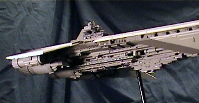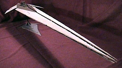By Jason Smith Scale: 1/8200The Sithspawn is the personal flagship of Admiral Flagg, a dark Jedi. Several shipyards competed for a possible Imperial contract for a new Star Destroyer. By using the dark side to manipulate the designers, Flagg took this opportunity to have a ship made to his own custom needs and specifications. The Sithspawn was one of only two Star Destroyers completed before the Empire cancelled the program. The other Star Destroyer was Lord Jerec’s flagship, the Vengeance. The Sithspawn was completed after the destruction of the first Death Star. The Sithspawn's primary mission was deep space exploration and conquest throughout the unexplored regions of the galaxy. Since that time Flagg has used the awesome might and of the to rule and ravage any opposition it faces. The Sithspawn measures 10,000 meters in length. It is equipped with various turbolasers, proton torpedo launchers, ion cannons, multiple hanger bays, and even a prototype World Devastator furnace capable of creating ships as large as corvettes and gunships. The Model:The design of the Sithspawn was derived from the Imperial, Eclipse, and Vengeance Star Destroyers and was done over the course of several years. It was constructed over the course of two months, almost entirely out of sheet styrene. The length of the model made it very difficult to photograph. The four foot (1.22m) long model is on a one-point display utilizing a 7/32 steel rod. It has a wingspan of twelve inches. The model weighs over 4 pounds. |