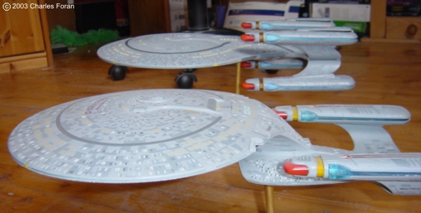 Image: Aft Image: Starboard aft Image: Dorsal view Image: Deflector Image: Foward starboard quarter Image: The bow from port Image: The nacelles Image: Accompanied Image: Racing the Enterprise |